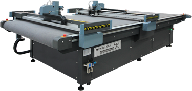 在瑞洲科技的展位現(xiàn)場,RZCRT5-1813智能數(shù)控切割機(jī),其自首發(fā)之日起,全球總銷量已達(dá)數(shù)千臺,經(jīng)市場多年驗(yàn)證,性能穩(wěn)定、表現(xiàn)卓越,深受國內(nèi)外用戶青睞; 集智能、高效于一體的智能數(shù)控切割機(jī)的,可實(shí)現(xiàn)畫線、繪圖文字標(biāo)注、壓痕、半刀切割、全刀切割一次性完成,切割速度高達(dá)1500m/s,振動(dòng)刀轉(zhuǎn)速高達(dá)18000轉(zhuǎn)。同時(shí)標(biāo)配進(jìn)口直線導(dǎo)軌,傳動(dòng)系統(tǒng)采用進(jìn)口直線導(dǎo)軌、齒條、同步帶,切割精度完全達(dá)到往返原點(diǎn)零誤差。